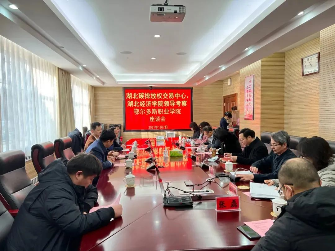 1月6日—7日,湖北碳排放权交易中心副总经理杨光星、湖北经济学院低碳经济学院副院长黄锦鹏一行先后赴鄂尔多斯研究院、鄂尔多斯职业学院调研并举行座谈。国投集团副总经理,碳中和研究院董事长王炳浩、新能源公司董事长张鹏及相关人员陪同。